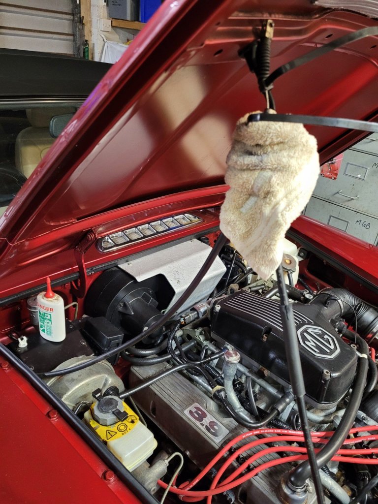 I reconnected the cable and before removing the rags oiled the accelerator pedal pivot.