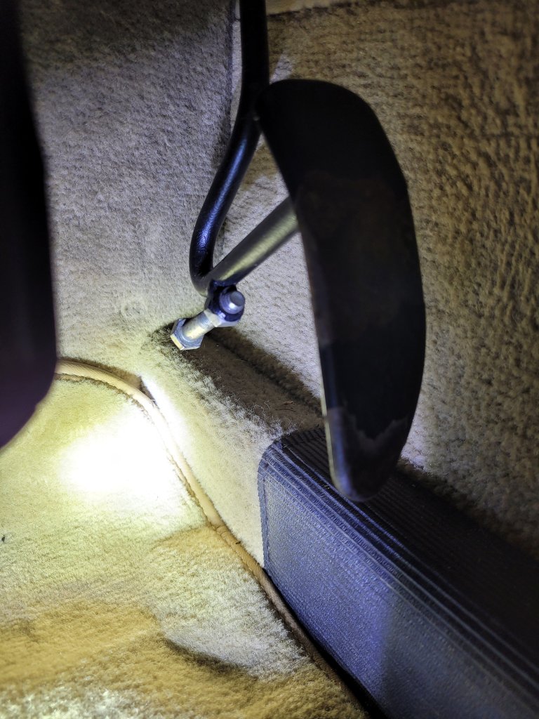 There is an adjustable nut and bolt attached to the pedal that is adjusted to ensure sufficient travel on the pedal to fully open the throttle …… this is particularly important if you have thick secondary carpets fitted.