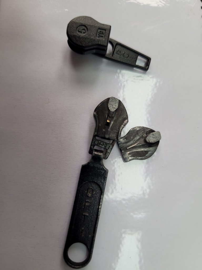 Fortunately the zip itself seems to be in good condition – there’s no damaged or missing teeth – its just the slider that seems to have worn out and so not closing the zip.