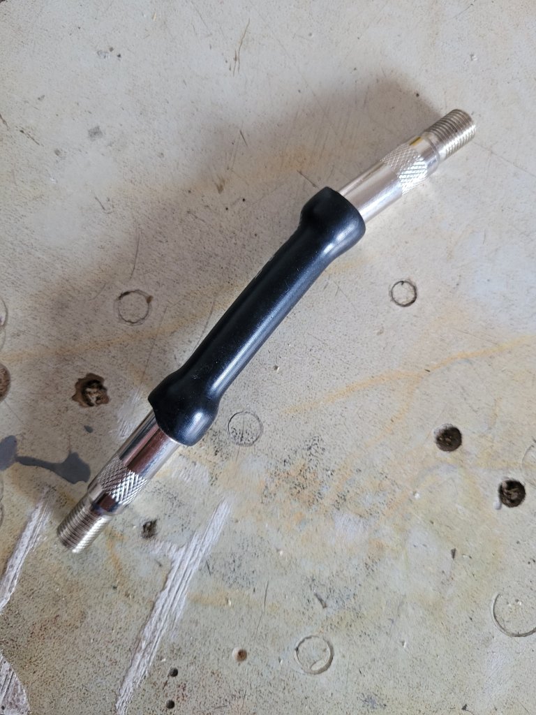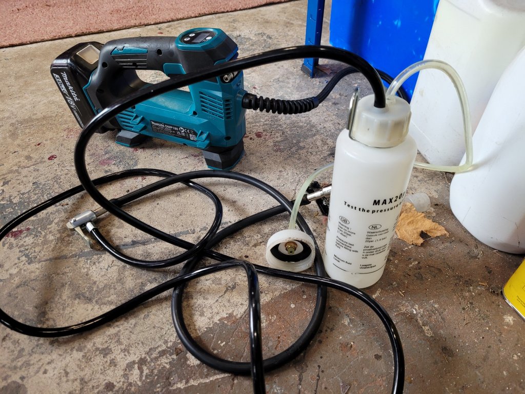 This time instead of using the spare wheel for the air supply I used a portable tyre inflator which have me a lot more control over the air supply. I only used a pressure of about 4psi which was quite sufficient. I made an adapter using 2 valve extenders and a short length of pipe.
