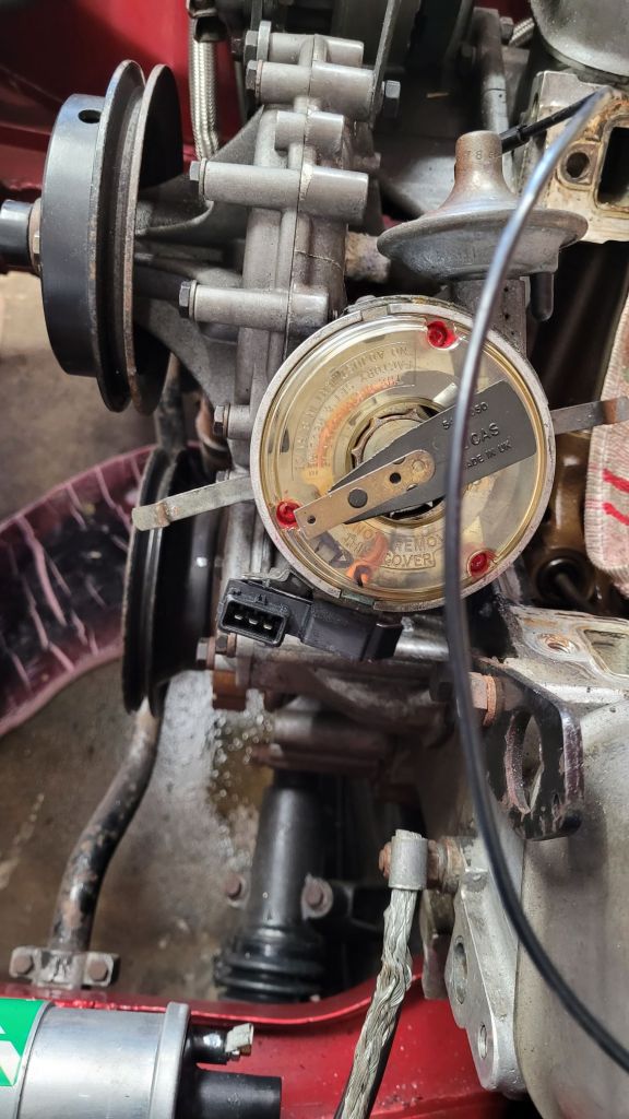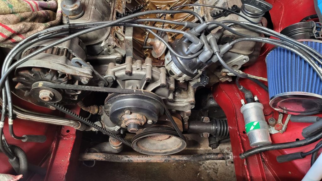 Again following the workshop manual line by line I removed the fan belt and had a go at the crankshaft pulley bolt which as expected was solid. I found a couple of bolts and cut and filed them as per the instructions in the manual. Jacked up the car on one side and fitted them which locked the crankshaft in position. Prior to locking the crankshaft I set it to TDC on no1 firing stroke as an initial datum.