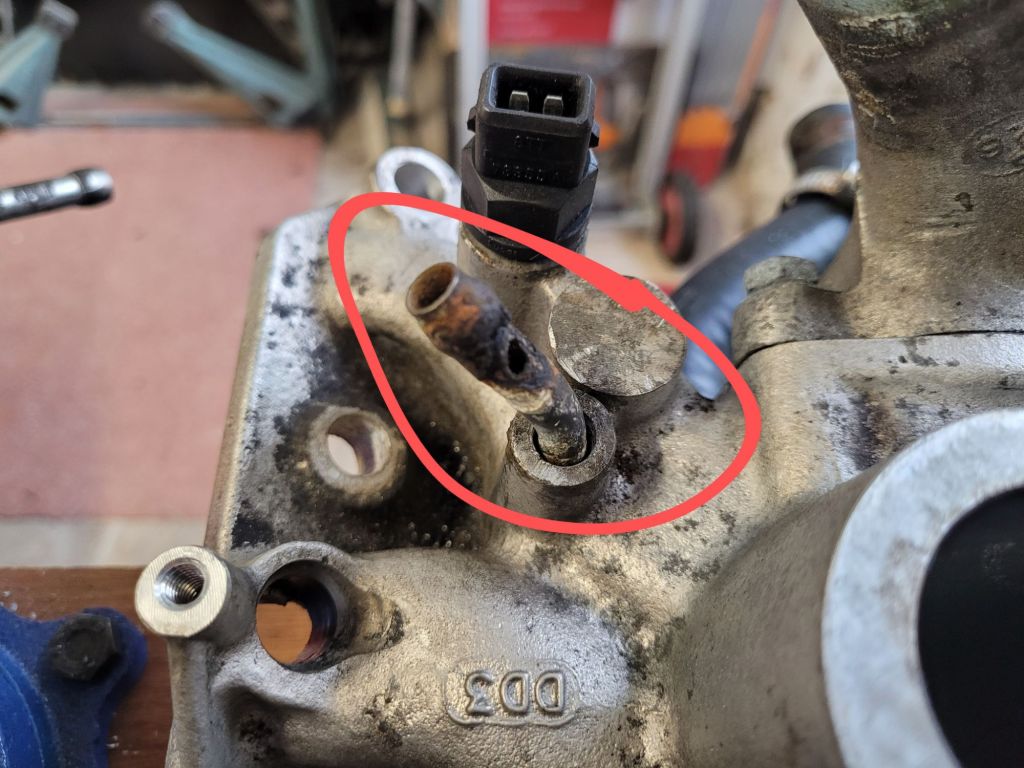 I cut the damaged nixie off, drilled approx a 15mm hole then tapped it. Fitted the brass hose connector sealing it with ptfe tape.